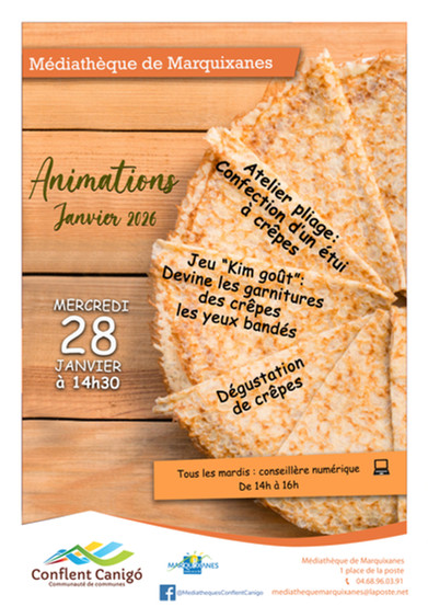 Toute la journée Conseillers numériques à Prades Matin : accompagnement aux démarches administratives Après-midi : atelier informatique (débutants et/ou confirmés) Lieu : Médiathèque intercommunale de Prades Matinée Conseillers numériques à Vinça Accompagnement aux démarches administratives & ateliers informatiques Lieu : Médiathèque de Vinça 14h00/16h00 Conseillers numériques à Marquixanes Accompagnement aux démarches administratives & ateliers informatiques Lieu : Médiathèque de Marquixanes